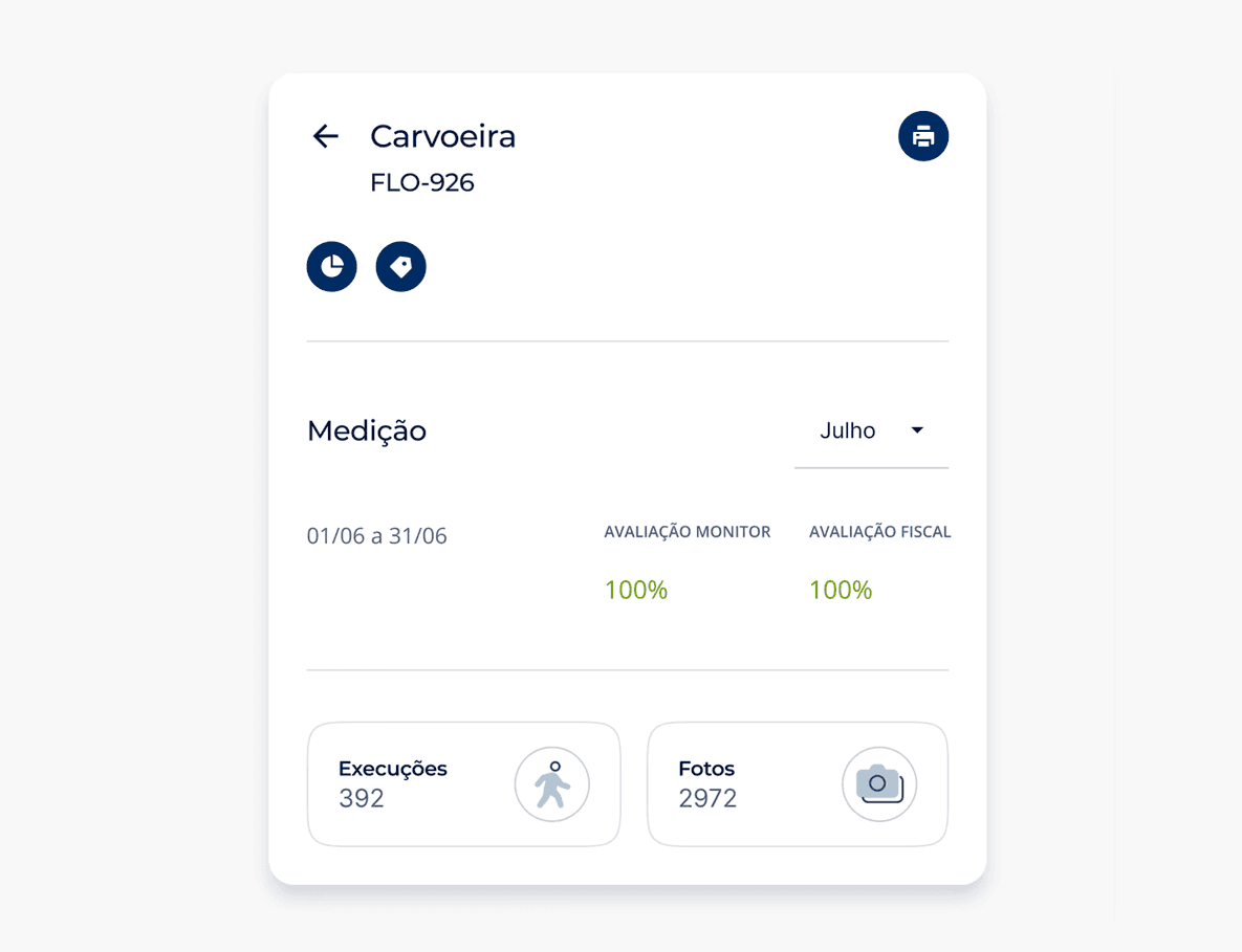 By clicking in a specific neighborhood you dive into the second map level where desktop users — environmental sanitation engineers and city hall auditors — can see all the maintenance areas of a particular neighborhood and also which and how many tasks were done on them.